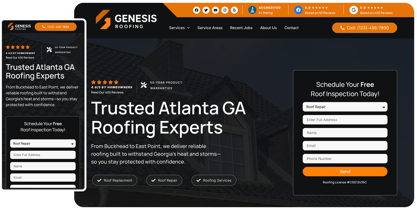 We bake in local SEO best practices (titles, service pages, city targeting). We don’t just know websites, we know what roofers need to grow. That’s the difference.